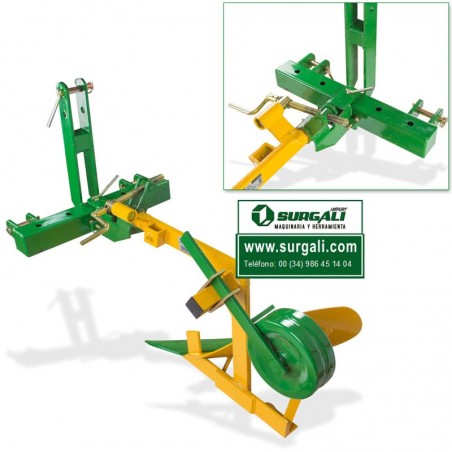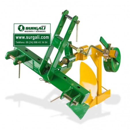 Arado doble para tractor. Especialmente adecuado para tractores pequeños con una potencia de 15 caballos de fuerza. Su simple y robusta construcción le permite un sencillo manejo. Tiene tres puntos de sujeción Cat. 1.