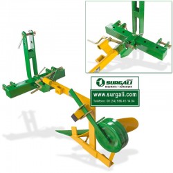 Pequeño arado ideal para el agricultor a tiempo parcial. Es especialmente adecuado para los tractores más pequeños de entre 15 y 20 Cv. Su simple y robusta construcción le permite aflojar y girar rápidamente el arado. . Posee 3 puntos de montaje. Ángulo de ajuste continúo del arado. Para la altura correcta ajustar la rueda de metal.