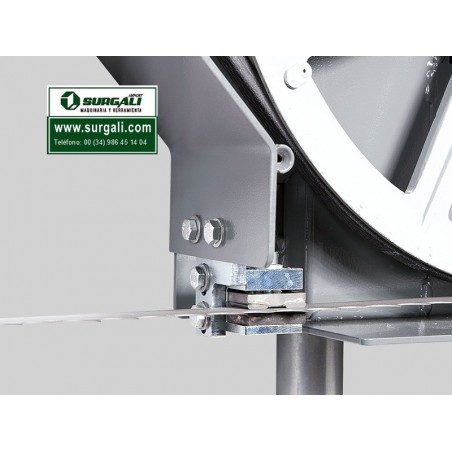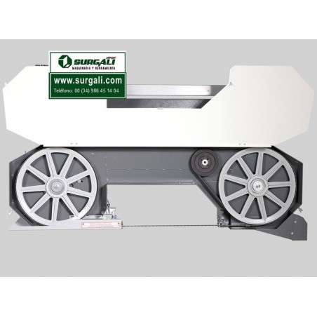 La máquina está montada en un remolque estable que permite un fácil transporte de la máquina al lugar de aserrado. A diferencia de la versión estándar, la sierra de cinta está equipada con un motor de gasolina profesional Honda de 8,7 kW (11 CV). La potencia suficiente del motor permite procesar sin problemas troncos de gran diámetro en todas las aplicaciones sin la posibilidad de utilizar un motor eléctrico. El bajo peso general permite un transporte más fácil de la máquina. Está diseñado principalmente para cortar volúmenes más pequeños de madera. Solución ideal para explotaciones familiares, talleres de carpintería o pequeños aserraderos. Alimentación manual muy simple en el corte y la espalda. El panel de control se coloca en un puente móvil del brazo de cinta de sierra. Gracias a eso, el operador tiene un acceso más cercano a la pieza de trabajo al cortar. La altura se ajusta mediante una manivela con escala ajustable.
