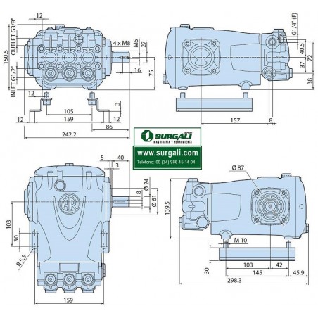 Esta bomba de Hidrolavadora se utiliza en infinitas aplicaciones: en máquinas Hidrolimpiadoras (en frío y en caliente) para eliminar la suciedad más incrustada y difícil de quitar en fachadas, piedra hormigon , piscinas, terrazas Para la limpieza de ambientes en la industria (alimentaria, química, farmacéutica), en comunidades (escuelas, hospitales) y en agricultura (establos, criaderos, silos). Para el lavado de contenedores: cisternas industriales, contenedores alimentarios, vehículos cisterna y contenedores de residuos urbanos. Para el tratamiento de las superficies, como hidroarenado de las paredes de edificios, limpieza de monumentos, tratamiento de cascos de embarcaciones, eliminación de pintura de las paredes de edificios y similares. En instalaciones fijas como túneles de lavado automático (vehículos, equipos, contenedores alimentarios) y en instalaciones de autoservicio para el lavado de coches. Para entre otros usos.