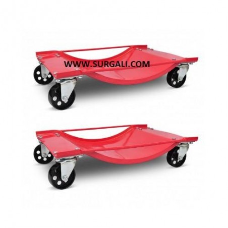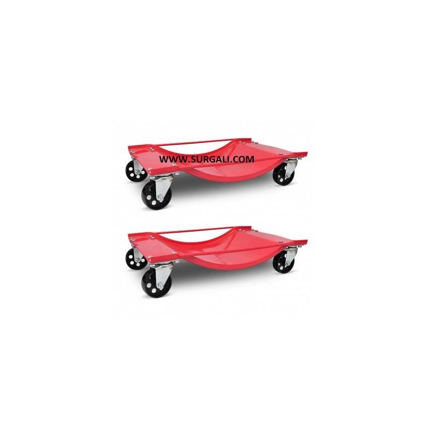 Carros para desplazamiento y transporte de vehículos. Ideal para vehículos que han sido accidentados averiados o no se pueden desplazar fácilmente. Con cuatro carros se podrá girar el vehículo sobre si mismo y realizar desplazamientos en cualquier dirección.Cada carro es capaz de soportar 750 Kg, con cuatro carros podemos elevar vehículos de hasta 3000 Kg. Puede ser usado en rueda de ancho hasta 300 mm.