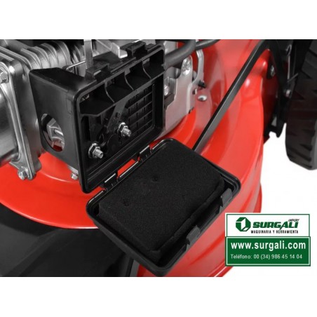 El Cortacésped HECHT 543 SX accionada por un motor Gasolina HECHT OHV con una potencia nominal de 3,5 Cv. 98 cm3. Bajo un chasis de acero robusto, la cuchilla gira con una hoja completa de 43 Cm. La velocidad es de 3,6 km / h. El ajuste de corte es posible de 25 a 65 mm. La hierba cortada se acumula en un cesto de 45 Litros. Gracias a un chasis de forma especial, es posible cortar el césped incluso en bordes y paredes (corte de bordes). El área de corte máxima recomendada es de 800 m2. El peso de la segadora es de 26 Kg. gracias al mango ajustable en altura, a las velocidad y a las ruedas montadas en los rodamientos de bolas, el manejo con el cortacésped es muy fácil.