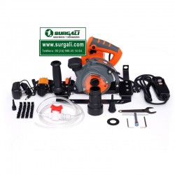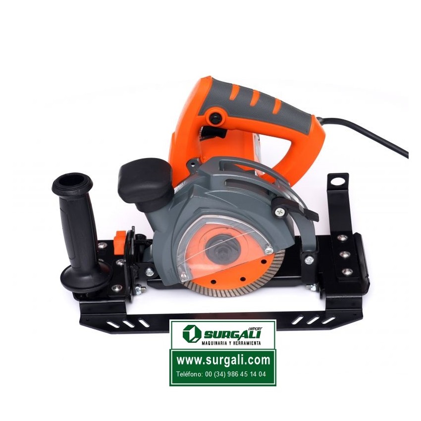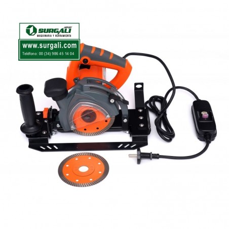 Cortadora de azulejos eléctrica equipada con un motor de 1500 W. y admite discos de 100 de diámetro. La potencia del motor permite una velocidad de 6000 a 9000 RPM. Cuenta con un ajuste de profundidad de corte vertical. Con la palanca de bloqueo, puede aflojar fácilmente el bloqueo y ajustar la cuchilla a la profundidad deseada sin necesidad de tornillos. Esto permite realizar cortes y entalladuras tanto superficiales como profundas.