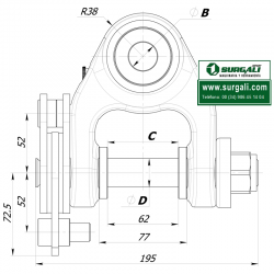 Cruceta de acople diseñado para soportar cargas de hasta 4,5 ton. Fabricado con acero forjado resistente a impactos y deformaciones.