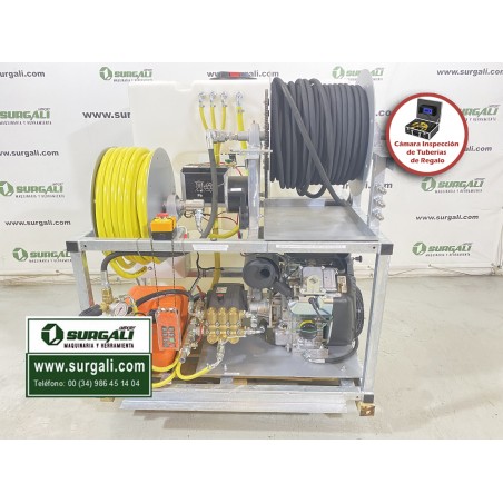 EQUIPO DE DESATASCO TUBERÍAS 23 CV. 33 LITROS 210 BARES SOBRE BANCADA