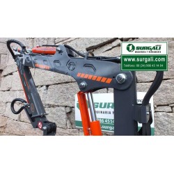 Grúa forestal fabricada en acero de alta resistencia. Muy versátil y rentable. Montaje sencillo en el tractor. Con grupo, bomba y deposito hidráulico incorporado en la grúa.