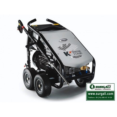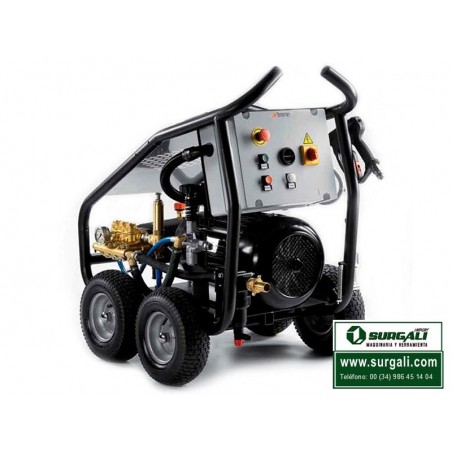 Hidrolimpiadora trifasica de alta presión. Hasta 500 bares de presión. Chasis fabricado en acero inoxidable. Agua fría.