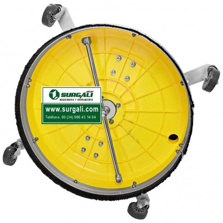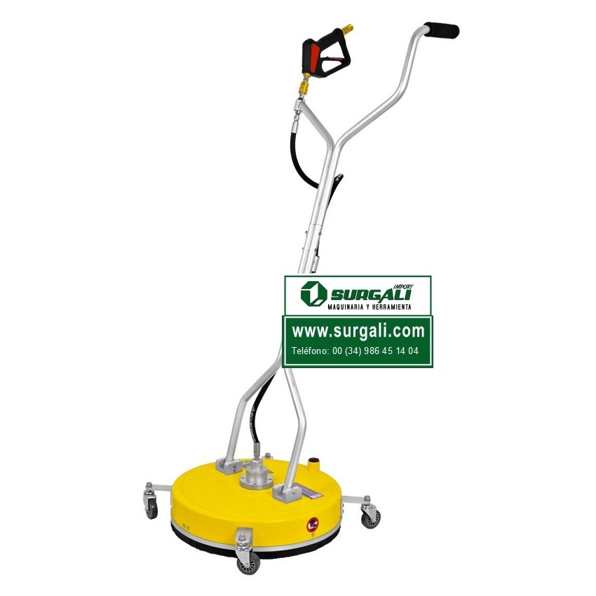 Lavapavimentos de superficies con boquillas giratorias. Ideal para la limpieza de suelos de Hormigón, Hormigón Impreso, Hormigón pulido, terrazo, plaquetas, etc. Este limpiador de superficies para Hidrolavadoras con agua a presión proporciona la más alta eficiencia de limpieza y la mejor ergonomía de trabajo. El conjunto incluye boquillas de alta calidad con mecanizado de precisión. Este limpiador de superficies es la mejor opción para limpiar con Hidrolimpiadoras grandes áreas.