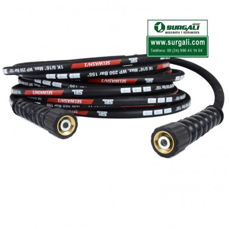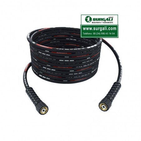 Manguera de alta presión con malla de acero. Adecuada para hidrolavadoras, hidrolimpiadoras y para la mayoría de las lavadoras a presión del mercado.