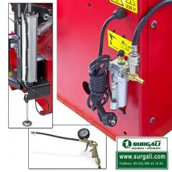 Este soporte es una ayuda imprescindible a la hora de cambiar los neumáticos más grandes, sin apenas esfuerzo. Simplemente hay que aflojar los tornillos de la rueda y el soporte hará el trabajo más duro. Soporta ruedas de hasta 1200 kilos, adecuado para ruedas de tractor, camión o maquinaria pesada. Se puede adaptar al diámetro de la rueda entre 100 y 200 cm. El soporte de montaje de neumáticos funciona mediante un cilindro de doble acción que es accionado mediante un pedal. Se puede desplazar l a través de 4 grandes ruedas de PE reforzadas, 2 de ellas con freno.