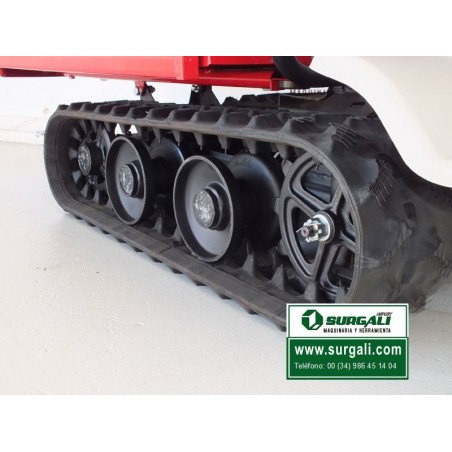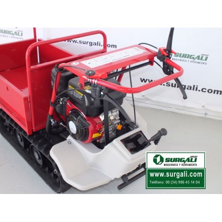 Mini dumper VH500PROGXRS con motor Honda es un desarrollo alemán propio y se diseño para uso profesional. Se ha diseñado para ofrecer durabilidad y el máximo rendimiento. Ofrece un servicio excepcional como el asistente perfecto para todas las tareas de transporte en diversas industrias. Con una capacidad de carga de hasta 500 Kg., transporta cargas sin esfuerzo y gracias a su contenedor basculante hidráulica, permite la descarga de forma rápida y sencilla. Las orugas proporcionan un buen agarre en superficies resbaladizas, lisas y embarradas, y su diseño extremadamente estrecho y dimensiones compactas permiten maniobrarlo con seguridad.
