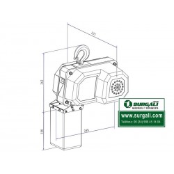 Polipasto eléctrico de cadena, con una longitud de cadena de 3 metros. Parada automática de emergencia. Instalación fácil y rápida gracias a su diseño ligero y compacto. Motor monofásico de 230 Voltios sin mantenimiento. Equipado con un mando por cable con 150 cm. de longitud.
