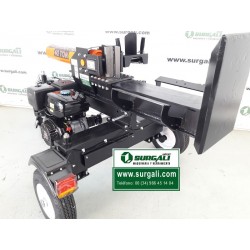 Rajadora de leña a gasolina, con un motor de 4 tiempos y 15 CV a 3600 rpm. Esta astilladora puede trabajar en dos posiciones, vertical y horizontal. Las máquinas de este tipo que se comercializan son lentas, un ciclo tarda entre 11 y 13 segundos. La nuestra es con diferencia la más rápida del mercado, un ciclo dura tan sólo 6 segundos.