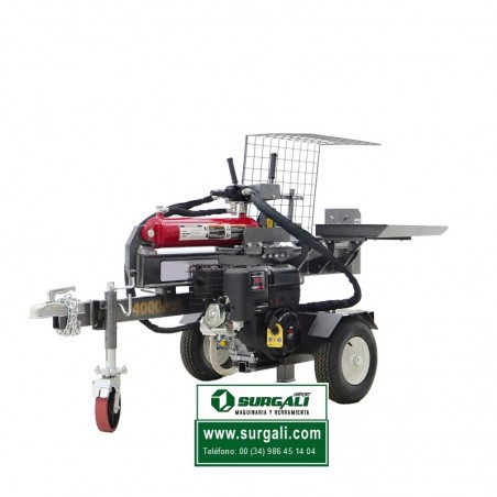 Rajadora de Leña horizontal propulsada por un potente motor de cuatro tiempos con una capacidad de 212 cm 3. El partidor puede desarrollar una presión de hasta 10 toneladas y permite partir sin problemas troncos de hasta 520 mm de longitud. Las ruedas de 12" y la barra de tiro facilitan el manejo, pero no están homologadas para uso en carretera.