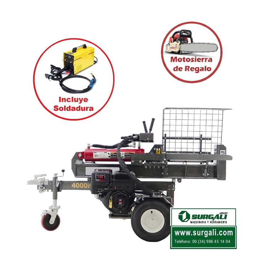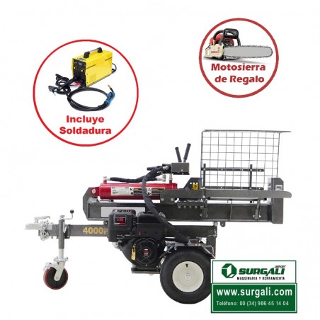 RAJADORA DE LEÑA GASOLINA VERTICAL/HORIZONTAL 40 TON. + SOLDADURA MIG/MMA 250 AMP. + MOTOSIERRA GRATIS