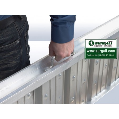 Rampa de Aluminio .Modelo muy práctico para la carga en vehículos con una sola rampa. Superficie antideslizante. Fácil de instalar, plegable, ligera. Gran capacidad de carga para un trabajo cómodo y seguro.