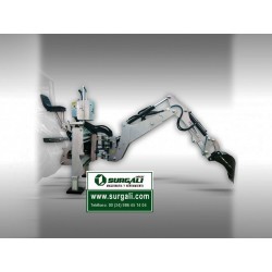 La retroexcavadora BHSM-225 se cuelga en los tres puntos del tractor y se conduce directamente a través del eje de la TDF (incluido). Tiene su propio sistema hidráulico por lo que el tractor solo necesita ser alimentado a través del eje de la TDF. El BHSM-225 se entrega con una pala de 400 mm y puede girar 180 grados, para que tenga un gran radio de acción. Además, las versiones BHSM de nuestras excavadoras pueden mover el brazo hacia los lados, de modo que el radio de acción aumenta nuevamente en comparación con las versiones BHM normales. El BHSM-225 se puede mover casi 900 mm hacia un lado. Esto también hace posible trabajar / excavar cimientos de tiras directamente en las paredes de la casa. El tractor debe tener al menos 45-50 hp. Un estabilizador se puede extender hidráulicamente durante el trabajo para aumentar la estabilidad. A diferencia de muchos modelos de la competencia, BHSM-225 es una versión muy robusta y pesada con un peso muerto de 860 kg. La fuerza de desgarro de la pala es de 1700 kg. La excavadora se maneja mediante un control cruzado.