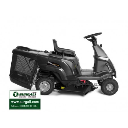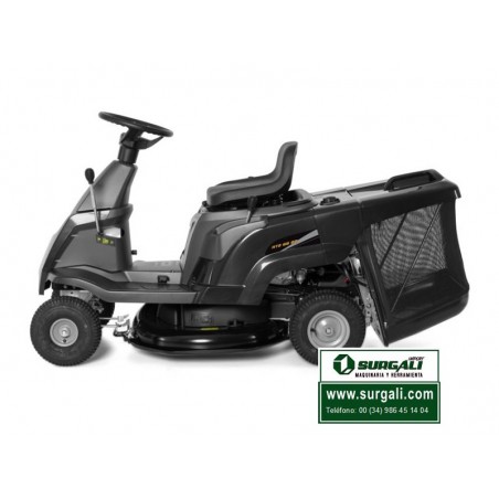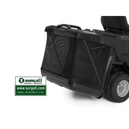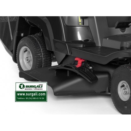 Tractor cortacésped con motor LONCIN OHV bicilíndrico, con una potencia máxima de 12,5 Kw. 17 Cv., una anchura de trabajo de 102 cm., una velocidad de avance de 8,8 km/h., ajuste central de la altura de trabajo de 30 a 90 mm., rodamientos de bolas y una cesta recolectora de 245 litros.