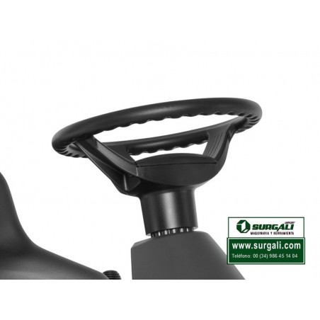 Tractor cortacésped con motor de 4 tiempos B&S serie 850 de 6,5 Cv. de potencia. Chasis de acero. Ajuste central de la altura de corte. Ancho de trabajo de 620 mm. y superficie recomendada: 2000 – 2500 m2. Rodamientos de bolas.