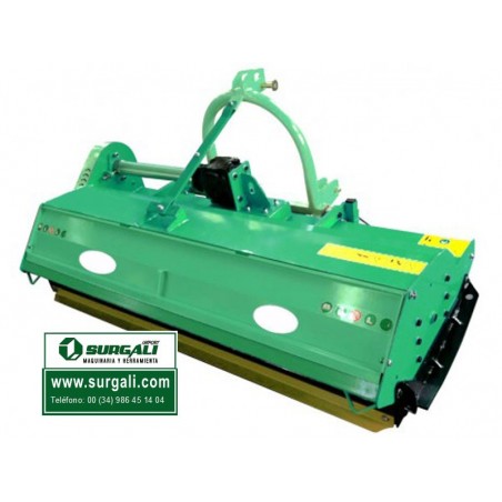 Para tractores de 50-80 CV (37-59 kW), caja de engranajes de hierro fundido con RL, rodillo trasero ajustable, tres modos de movimiento lateral, ajustables manualmente, deslizamientos laterales, contrablade con muesca, equipado con martillos, gato de enganche universal de 3 puntos, la Puerta trasera con manija para facilitar el mantenimiento / reemplazo de cuchillos y martillos